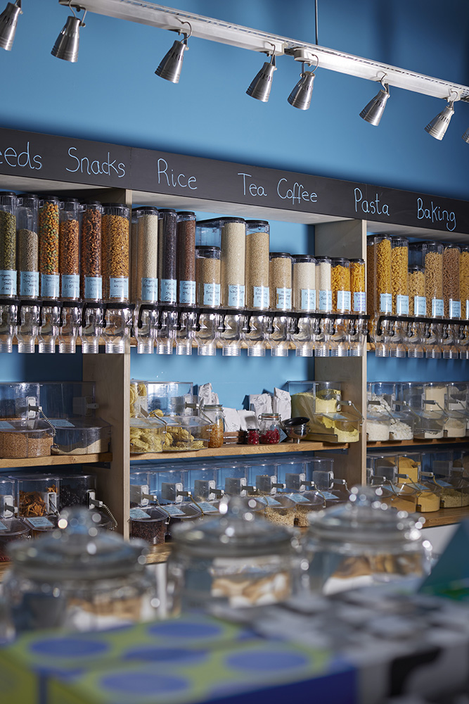 The shop, which operates on a simple refill-and-reuse ethos, invites customers to bring their own containers, fill them with loose food and household products, and pay by weight — a model that reduces packaging and waste while making ethical shopping practical.